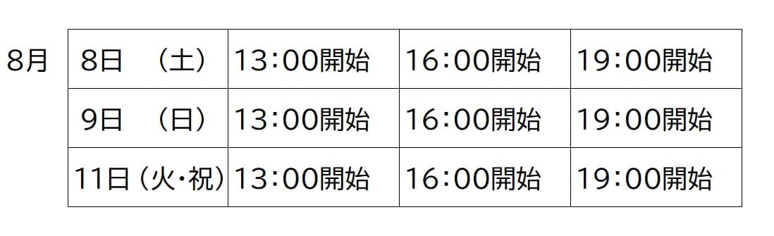 ■日程・開始時刻 以下の9回の日時から選択してください。