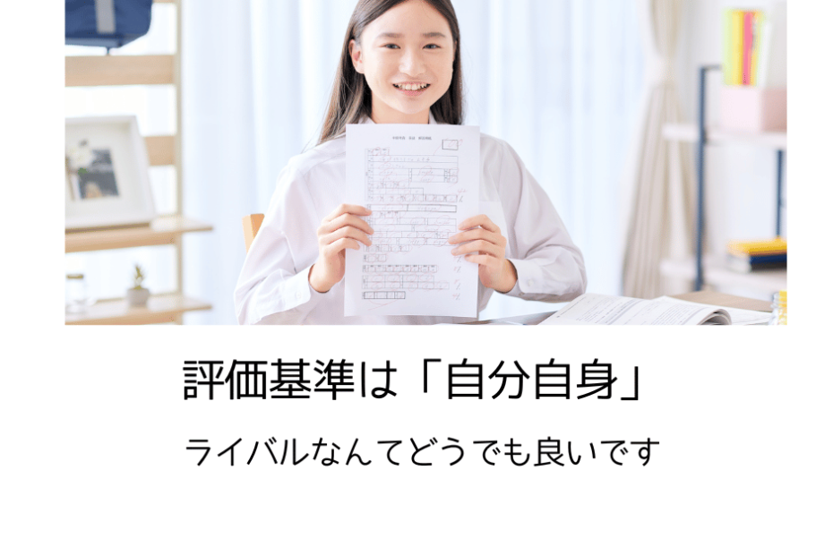 高松市国語塾EQZ、塾長です。 「ライバルに差をつけよう」みたいなフレーズを使った宣伝を見かけることがあります。 あのね、そんなの気にしなくて良いですから。 ライバルに差をつけなくて良いですから。 っていうか、「ライバル」って何よ?笑 … 続きを読む »評価基準は自分自身